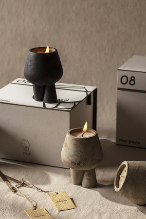 The State Candle embodies the harmony of balance and asymmetry, inspired by the essence of Eastern philosophy. Its design reflects the interplay of structure and fluidity, with a textured surface resembling weathered metal, exuding a natural, peaceful vibe. Handcrafted with care, each layer of ceramic is brushed with precision, creating unique, artisanal patterns that convey warmth and character. The State Candle is more than a décor piece—it’s a serene statement of artistry and tradition.