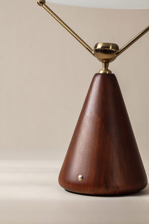 The Wiggle Lamp reimagines lighting with a touch of playful personality. Designed to resemble a cheerful figure holding up a tray, it exudes movement and energy, bringing an interactive element to your space. Its frosted glass shade can be manually rotated to adjust the light's direction, creating a dynamic interplay of shadows and angles. Crafted with warm walnut tones and refined brass details, this lamp strikes a perfect balance between vintage elegance and modern whimsy. Ideal for cozy interiors, it adds both character and functionality, making every corner of your home a bit more inviting.